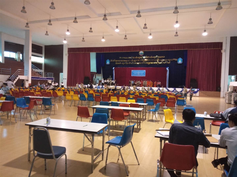 似乎每個(gè)學(xué)校都有這么一個(gè)報(bào)告廳,里面裝修得寬敞明亮,老撾國立大學(xué)也不例外。