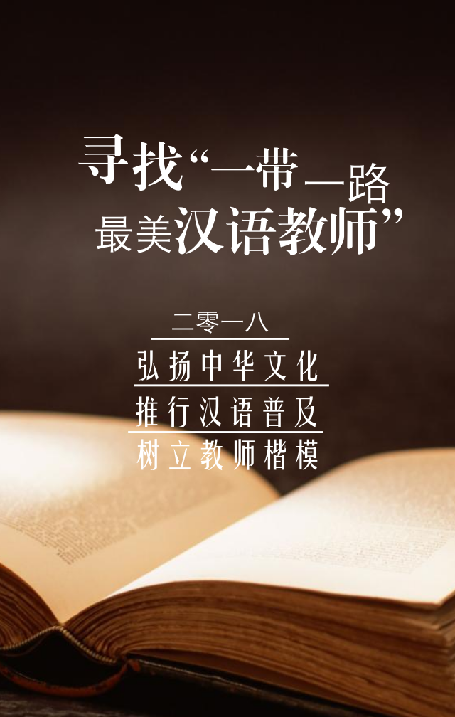 為進一步弘揚中國漢語文字推廣普及文化教育理論傳播,推進漢語教學科學和諧發(fā)展,營造師生默契配合的濃厚學術(shù)氛圍,促進學風建設(shè),同時也為了給教師提供一個展示自我的平臺,現(xiàn)決定在一帶一路沿線國家開展2018年尋找“一帶一路最美漢語教師”評選活動。