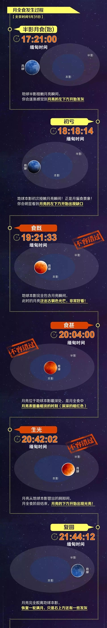 那么,今年的“血月”將在哪些時(shí)間段出現(xiàn)?為什么還會(huì)有藍(lán)月亮?欣賞和拍攝的最佳時(shí)間、位置怎么選?提前要準(zhǔn)備些什么呢?答案都在此啦↓