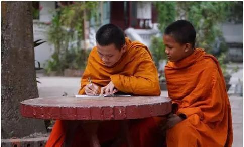 由于佛教文化的深入在老撾的學校里,可以看到這么一群人,他們身著橙色袈裟,身著制服的學子們一同行走在學校的道路上,形成獨一無二的學習氛圍。