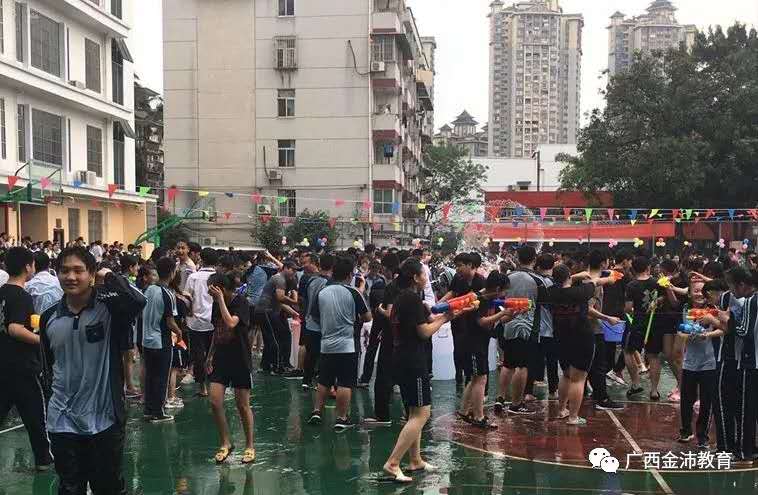 活動(dòng)開始,高三學(xué)子進(jìn)行“游龍翻身”的游戲,取“游龍翻身取金榜,十五中學(xué)我最棒”的含義。接下來身著東盟各國傳統(tǒng)服飾的學(xué)生為大家獻(xiàn)上了優(yōu)美的東盟國家舞蹈,展現(xiàn)了東盟各國的傳統(tǒng)舞蹈的魅力。隨后由學(xué)校校長帶隊(duì),各年級(jí)老師共同參與,手持水瓢,將滿載祝福的水輕灑向所有高三學(xué)子,拉開了潑水狂歡的序幕。伴隨著歡快的音樂,潑水狂歡將本次活動(dòng)帶向高潮,大家積極參與,手持水盆、小桶、水槍,你追我趕,相互潑灑,傳遞著著祝福與歡樂。以多種形式將各國文化風(fēng)情融入學(xué)生的心理教育中。