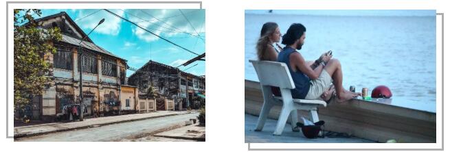 走在貢布市街頭,隨處可見的法式建筑,會使你有一種誤入上世紀(jì)法國的時空錯落感,但市場內(nèi)充滿著的濃濃東南亞氣息,又會將你拉回到了現(xiàn)實(shí)當(dāng)中。貢布曾是法屬殖民地,如今成為了法國人精心修飾過的浪漫度假小鎮(zhèn)。每天圍坐在河邊的酒吧里看著落日吹風(fēng),偶爾有些游客要了一瓶啤酒,便在河邊坐上一天。時間在這里仿佛不再流逝,你可以就這樣悠閑地享受貢布小城里慵懶的午后時光。