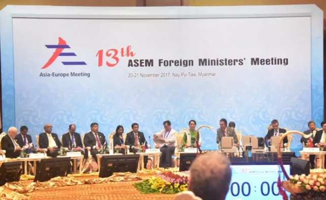 當(dāng)?shù)貢r(shí)間2017年11月20日,中國外交部長(zhǎng)王毅出席在緬甸內(nèi)比都舉行的第十三屆亞歐外長(zhǎng)會(huì)議,并在會(huì)上作了題為《共同構(gòu)建新時(shí)代的亞歐新型伙伴關(guān)系》的引導(dǎo)性發(fā)言。