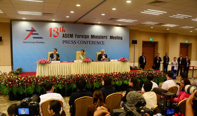 11月21日,杜昂山素季舉行新聞發(fā)布會(huì)表示:緬甸很榮幸主辦第十三屆亞歐外長(zhǎng)會(huì)議,本屆亞歐外長(zhǎng)會(huì)議共有來自亞歐51個(gè)成員國,亞歐會(huì)議秘書處和歐盟的54個(gè)代表團(tuán)和500多名代表參加了會(huì)議。代表團(tuán)由亞歐外長(zhǎng)或高級(jí)代表領(lǐng)導(dǎo)。本屆會(huì)議之前的11月17日至19日期間,舉辦了90多個(gè)雙邊會(huì)議。