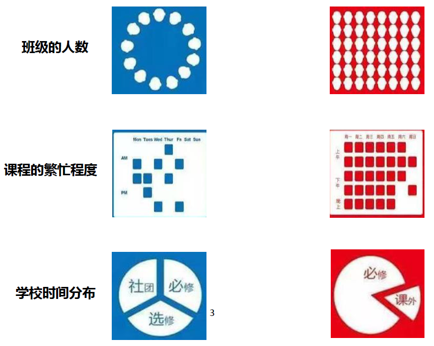 “嘗試教育”,學(xué)生為主;學(xué)生大多圍成圈,老師講究與學(xué)生的課堂互動(dòng)