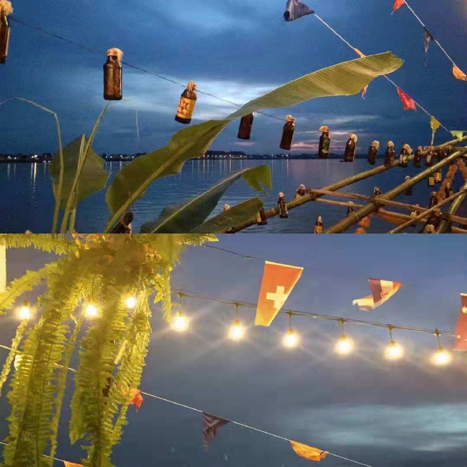 水燈是用象征著力量和財富的芭蕉葉折疊制成的,有的折成葵花狀,有的折成寶塔狀,折好的水燈上會插上鮮花和香燭,燃放爆竹之后,人們將香燭點燃,緩緩放入水中。剎那間,映著傾城月色,河面上燈火萬點,忽遠忽近,隨波漂蕩,蔚為壯觀。