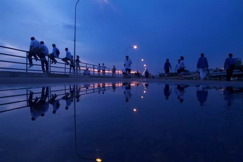 華燈初上,褪去了燥熱的湄公河,涼風(fēng)習(xí)習(xí),心曠神怡,沿河漫步的人們伴著落日余暉徐徐而來,恍惚間讓人生出人間天堂的幻覺。