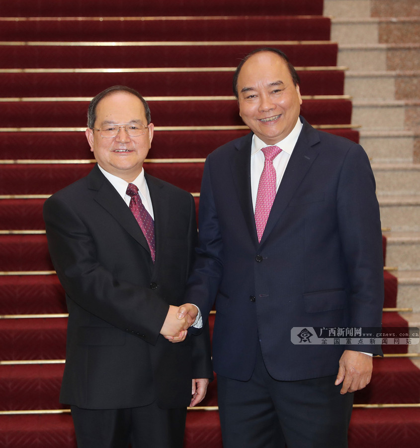 3月19日,自治區(qū)黨委書記鹿心社在河內(nèi)拜會越南總理阮春福。記者 黃克 攝